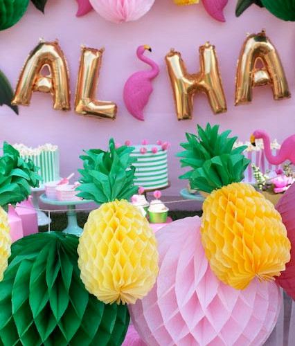 在派對中有兩樣重要元素:拖鞋以及扶桑花,可以在派對的裝飾中,善用這兩樣要素。比如在門口,用人字拖擺成迎接賓客的字樣,或者是裝飾在氣球上的扶桑花圖樣都是很好的選擇。